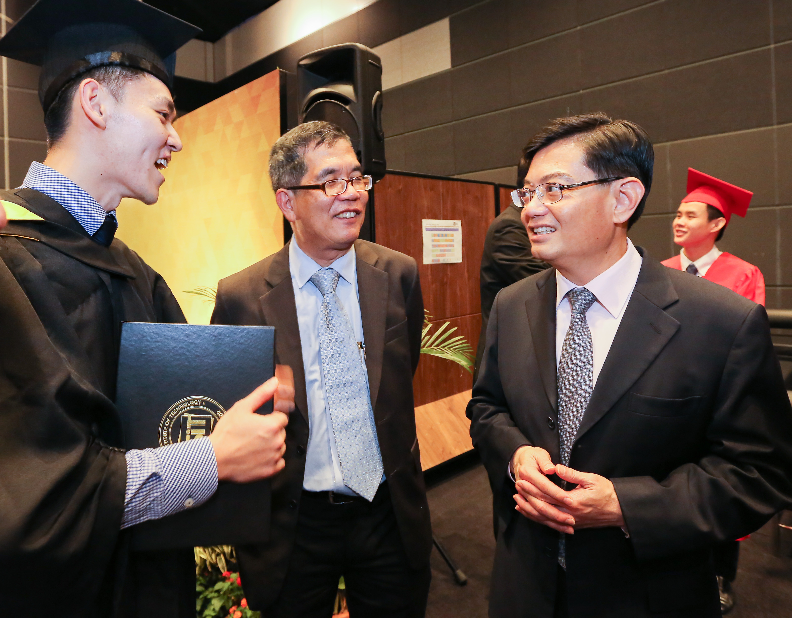 From left to right: Mr Ken Tee Tiong Keng (SIT graduate from TUM), Professor Tan Thiam Soon (President, SIT), Minister for Education Mr Heng Swee Keat