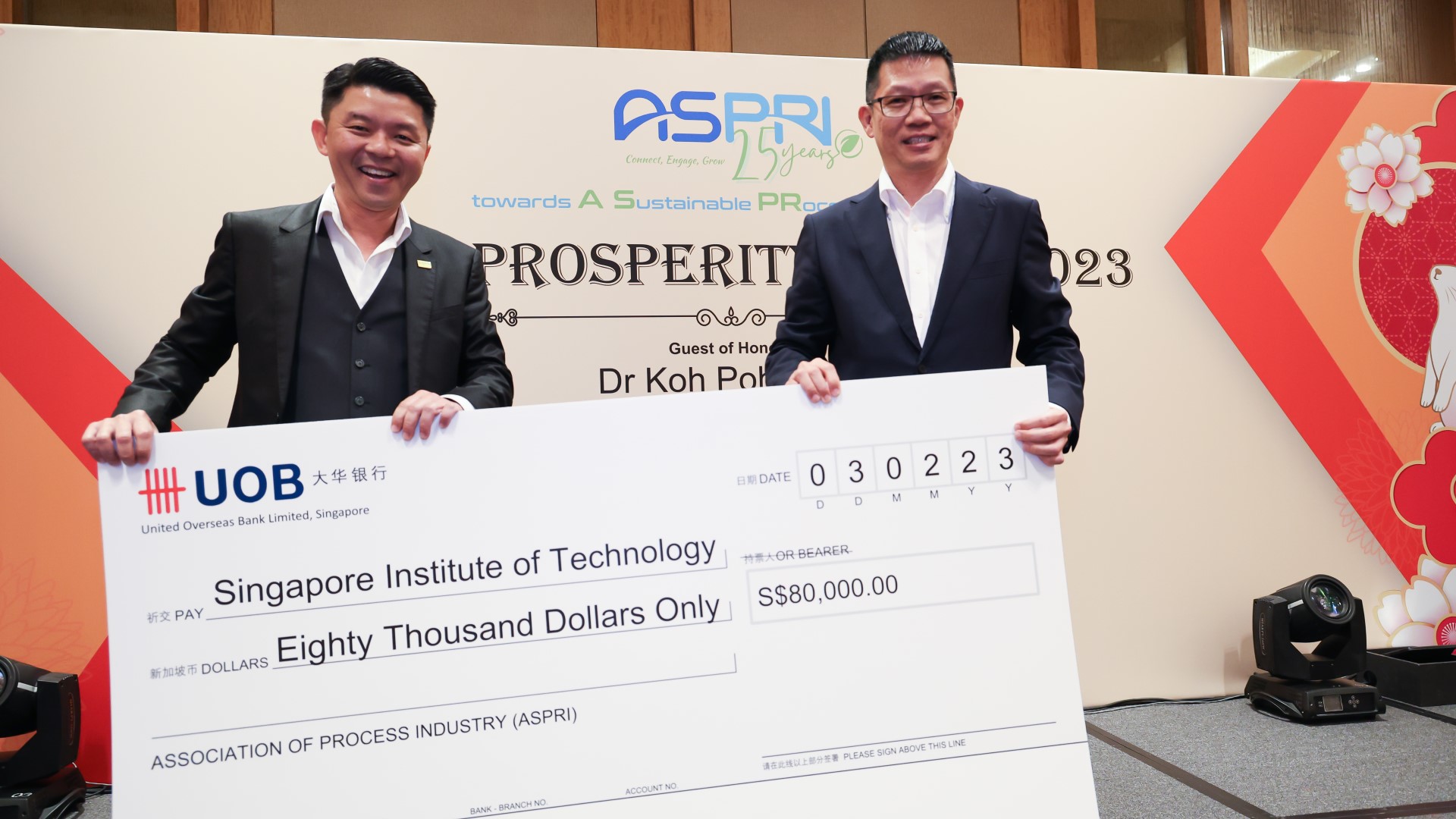 SITizens represent SIT at a charity dinner in celebration of philanthropist Mama Wong’s 85th birthday, who made possible the Wong Kwok Leong Bursary at SIT