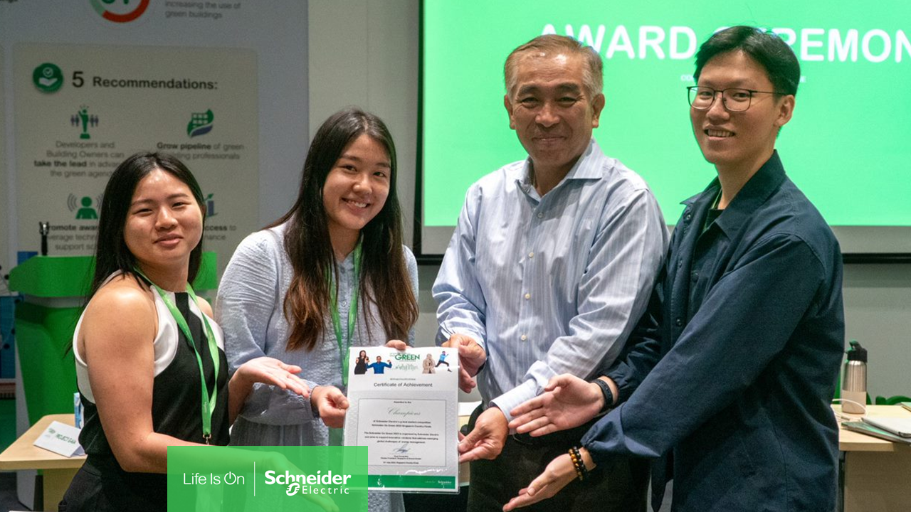 Jee Jia Min and Wilfred Ng, both final-year students reading the SIT-DigiPen Computer Science in Real-Time Interactive Simulation degree programme, along with Nicole Yap from NTU, emerged as champions in both the Singapore and Regional rounds of the Schneider Go Green challenge.